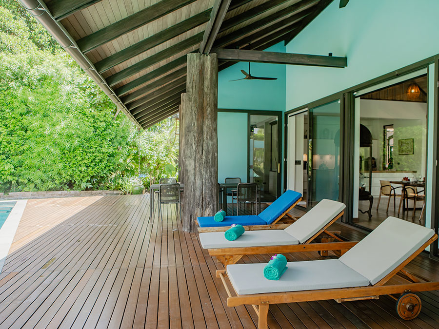 - 4 comfortable sunbeds for soaking up the sun